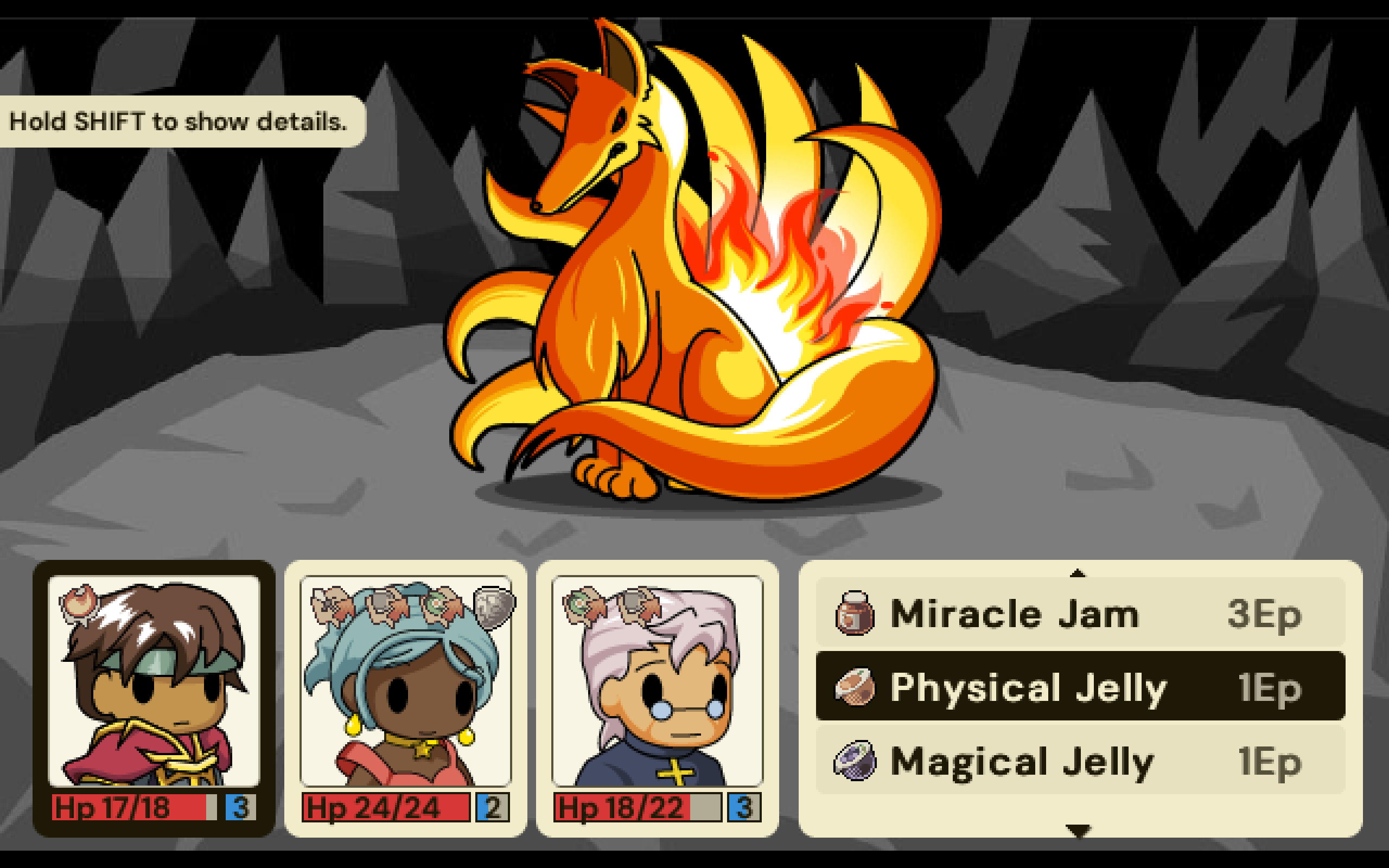 - Stress-free combat: No random encounters and no bitter penalties. If a battle doesn't go your way, take a snack break and try again when you're ready! <3